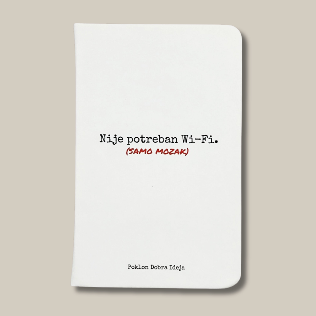 Bilježnica s natpisom Nije potreban Wi-Fi samo mozak