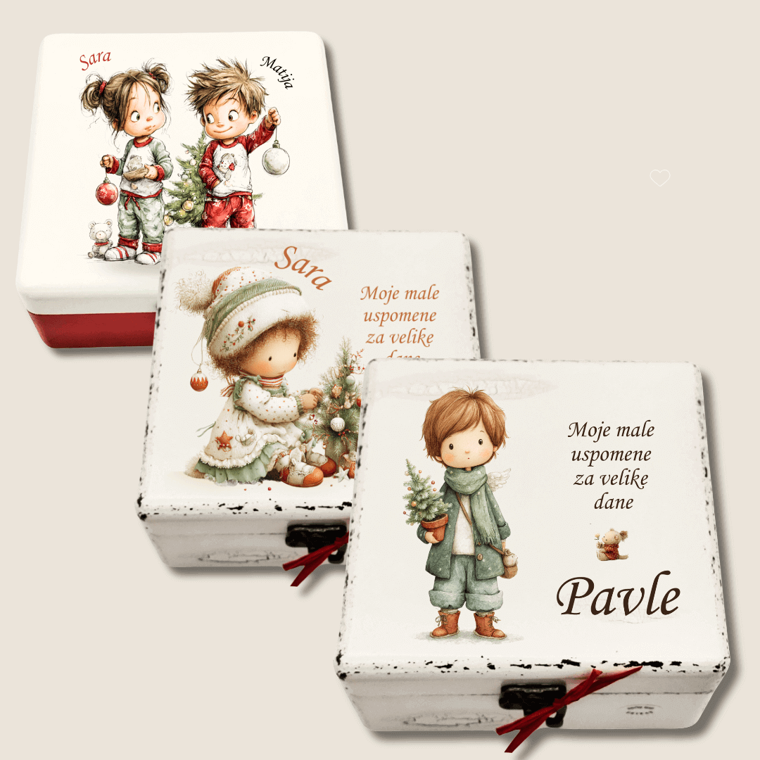 Božićne kutije uspomena savršen su poklon za rođenje, krštenje, prvi Božić ili kao dar baki i djedu koji vole čuvati zajedničke uspomene.