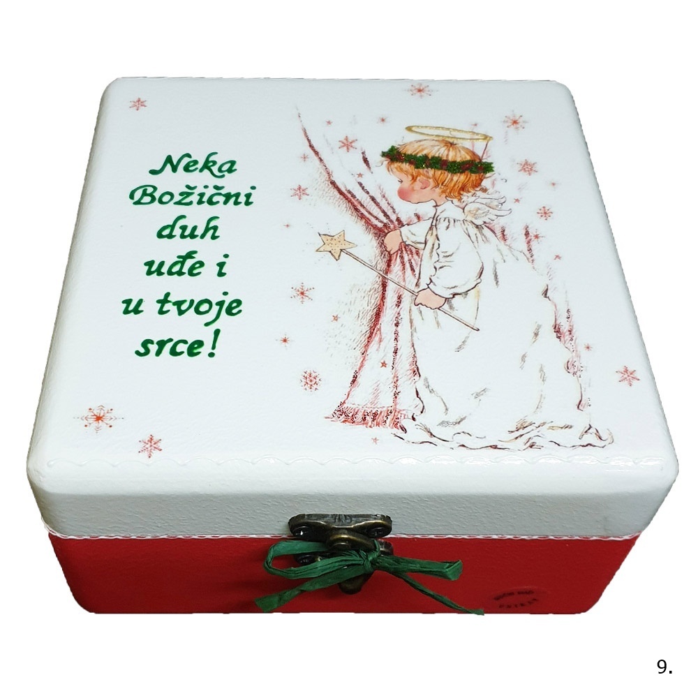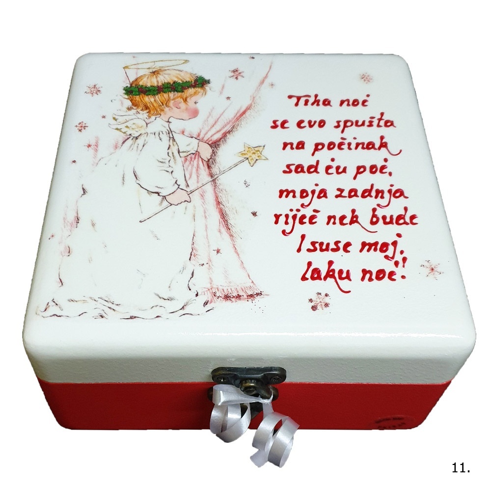 Kutija uspomena s motivom anđela i tekstom Tiha noć, ručni rad s rukom pisanim natpisom