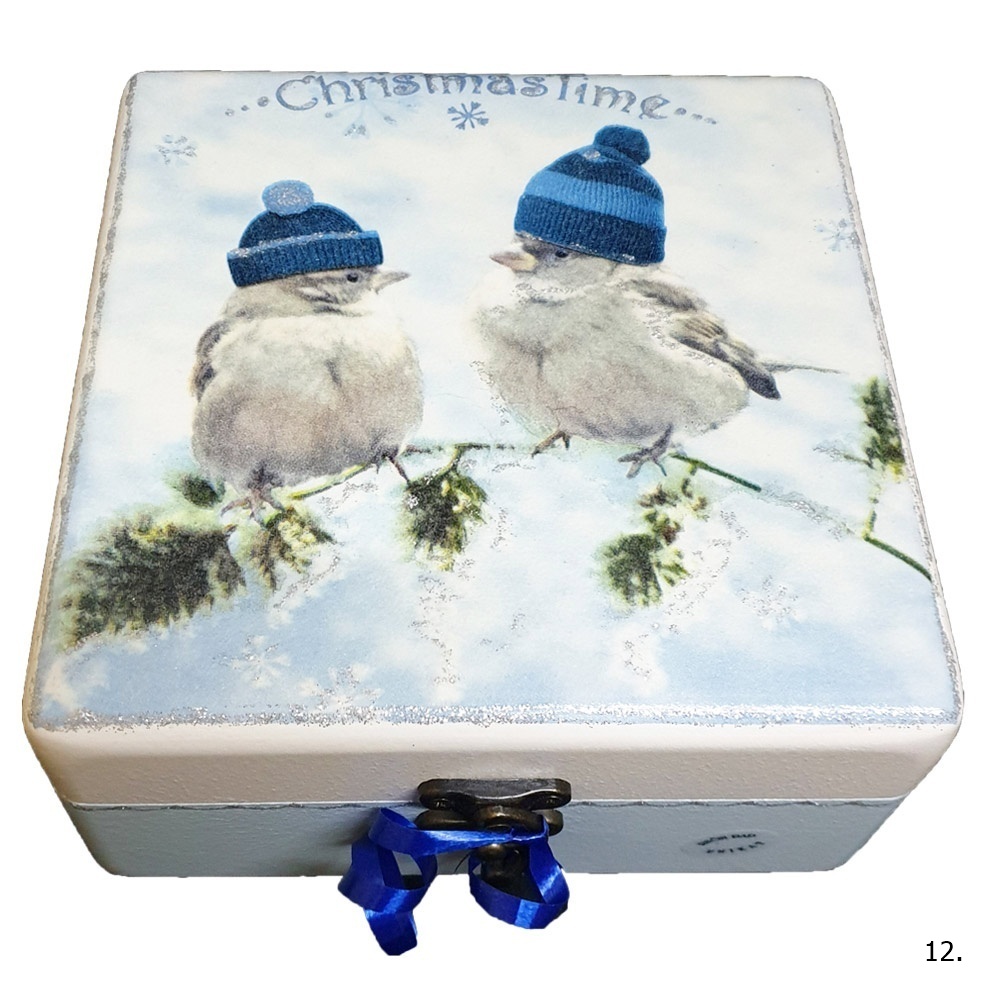 : Božićna kutija uspomena s motivom dviju ptičica u zimskom pejzažu
