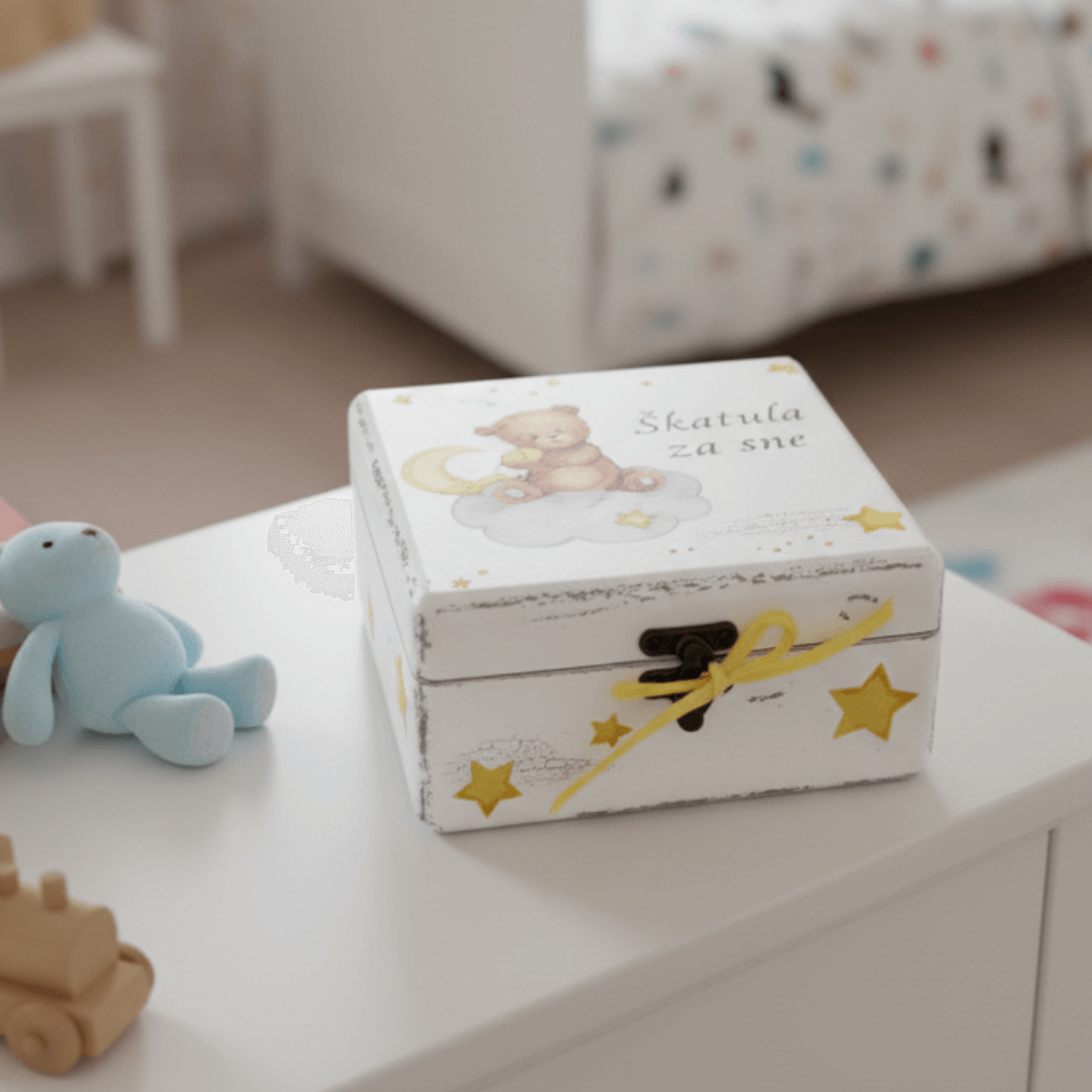 Personalizirana kutija uspomena za dječju sobu s motivom medvjedića i zvjezdicama