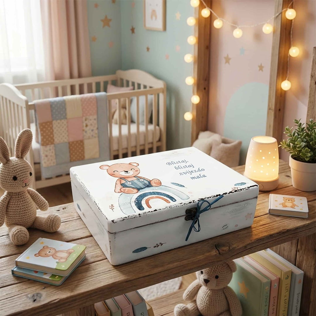 U svijetu prolaznih igračaka, Vi tražite nešto što ima trajnu vrijednost. Ova kutija nije industrijski proizvod s trake; ona je rezultat pažljivog ručnog rada, osmišljena da izazove emociju svaki put kada se otvori. Bilo da ste ponosna kuma koja traži savršen poklon za svoje kumče, baka koja želi ostaviti trag ili prijatelj koji želi darovati nešto drugačije – ova kutija prenosi poruku ljubavi koju tvornički proizvodi ne mogu ispričati.