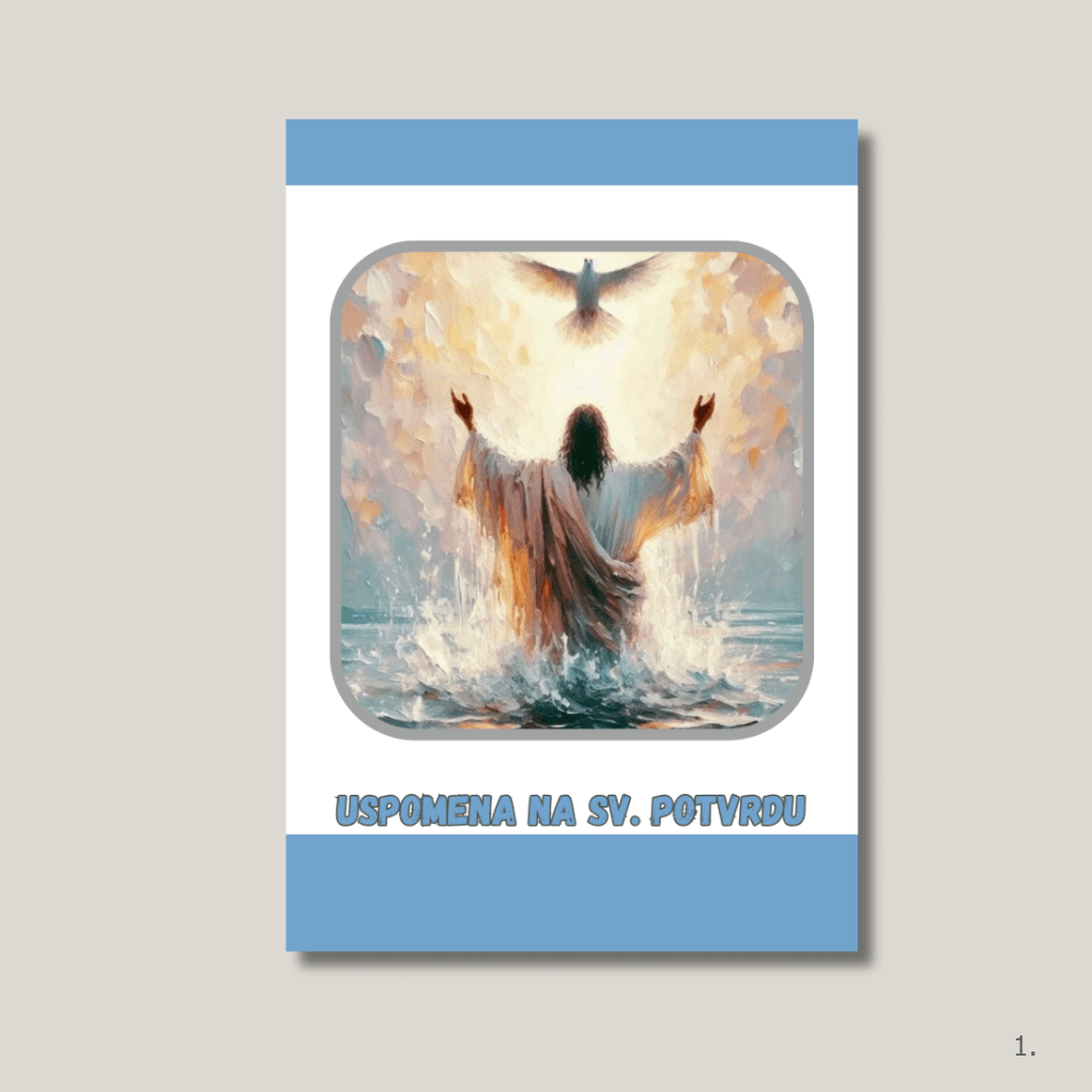 Uspomena na svetu potvrdu – ilustracija Isusa s raširenim rukama i Duhom Svetim, religiozni motiv za krizmu