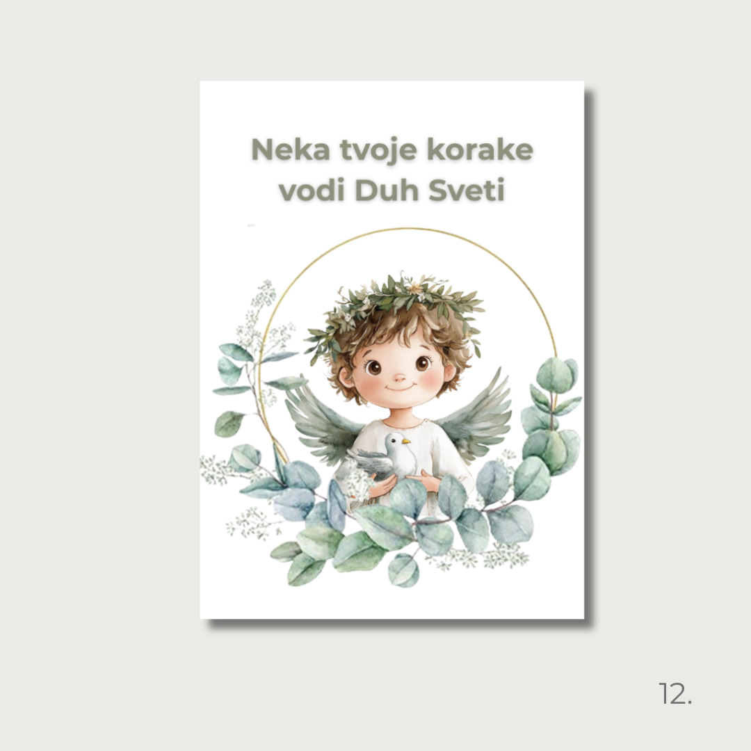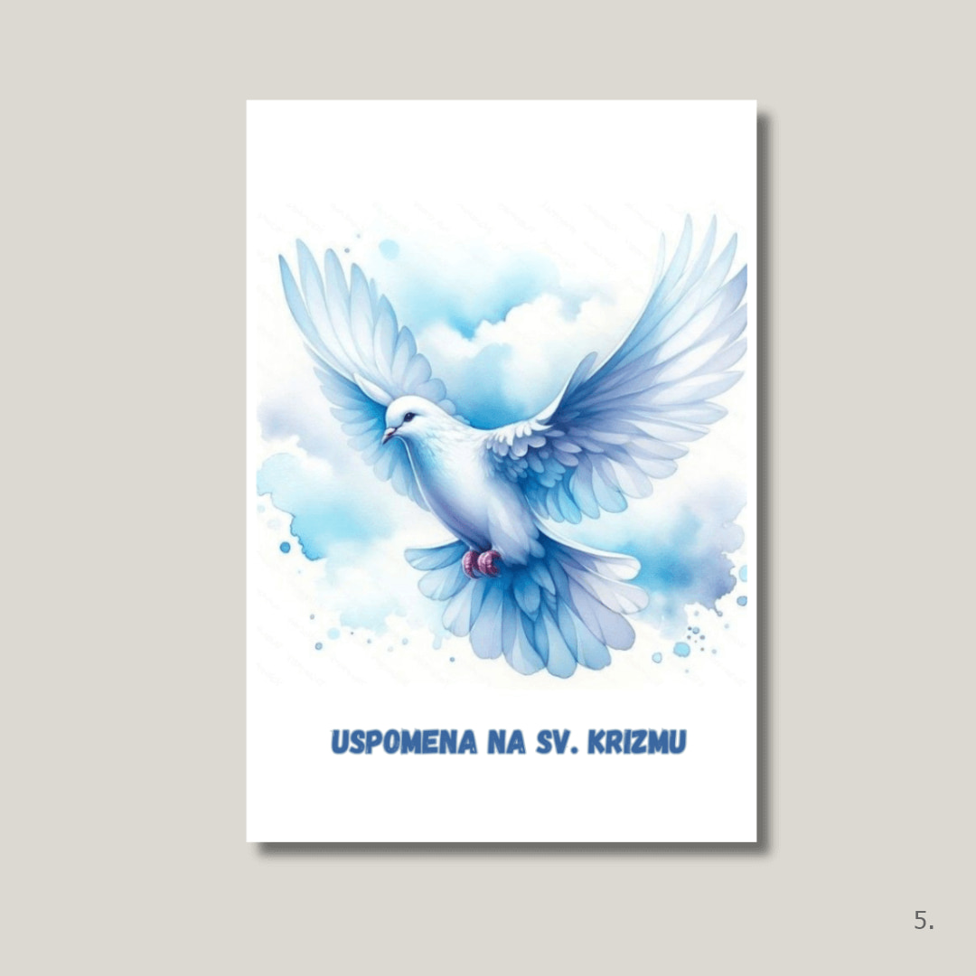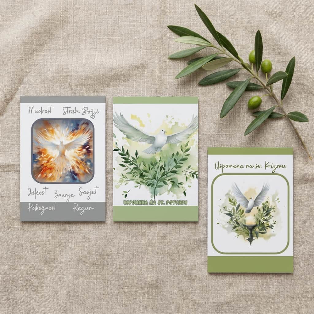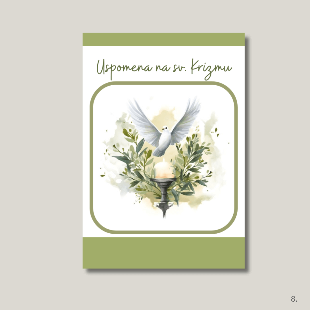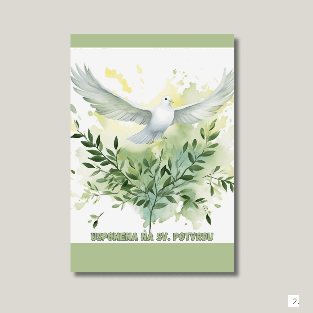Uspomena na svetu potvrdu s motivom bijele golubice i maslinovih grančica – simbol Duha Svetoga