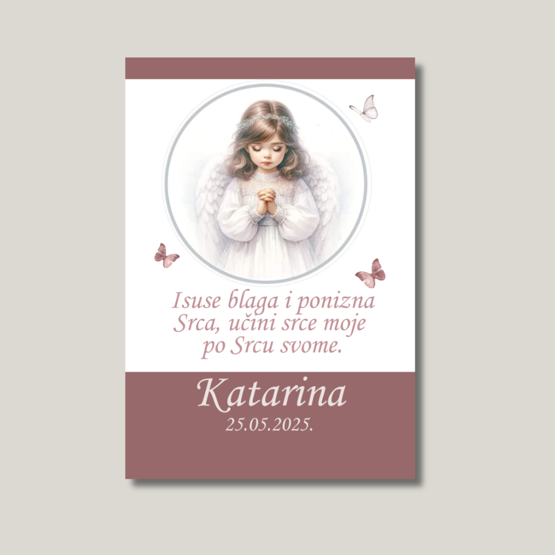 Magnet s motivom križa i anđela za prvu pričest vintage stil