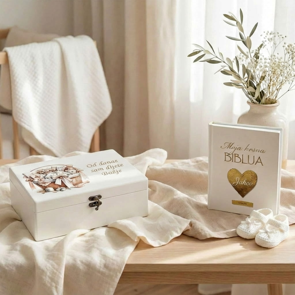 3. Deluxe Komplet (Kutija + Album + Biblija): Vrhunski poklon koji objedinjuje uspomene, slike i Riječ Božju u jedan trajni dar.