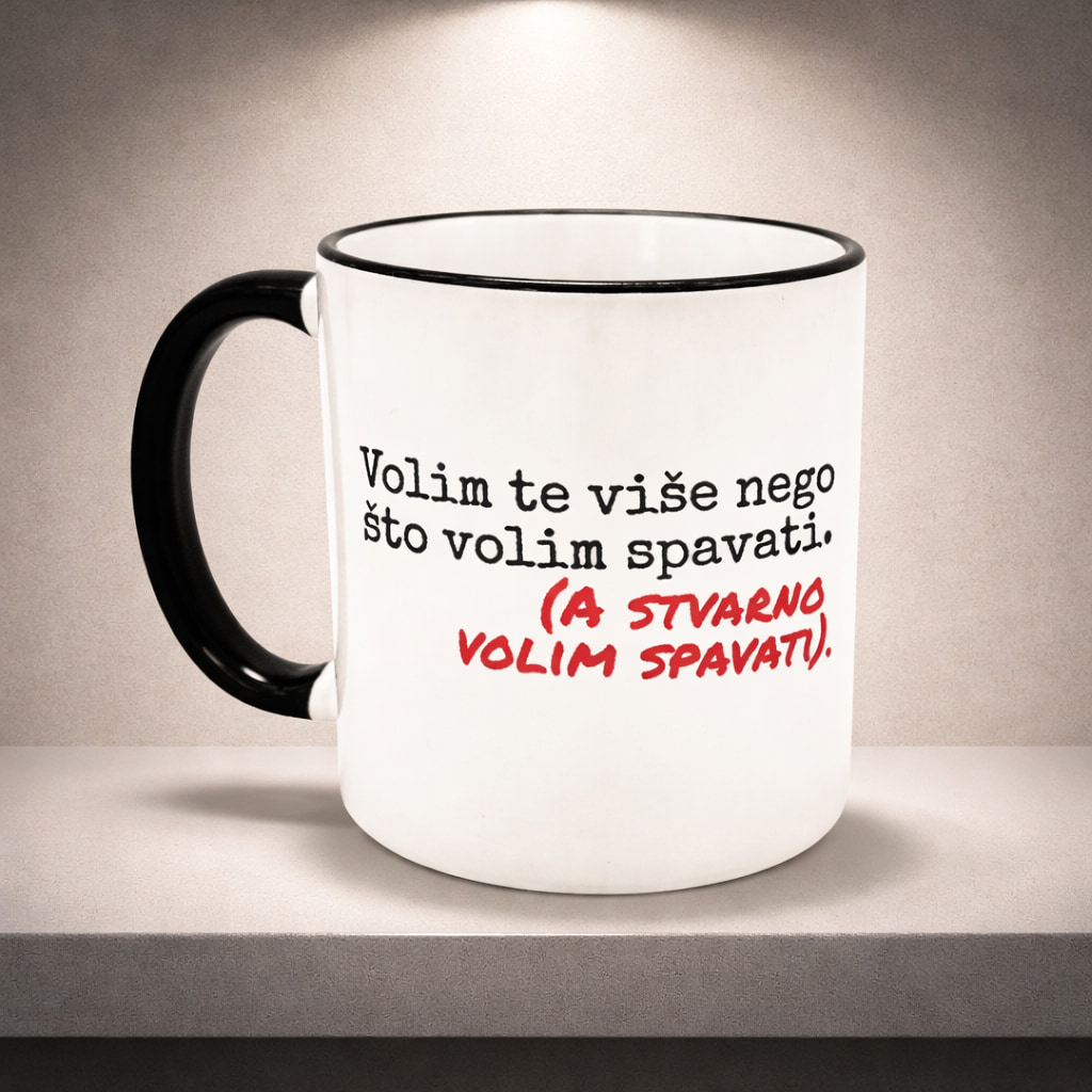 Šalica s porukom Volim te više nego što volim spavati a stvarno volim spavati poklon za djevojku ili dečka.