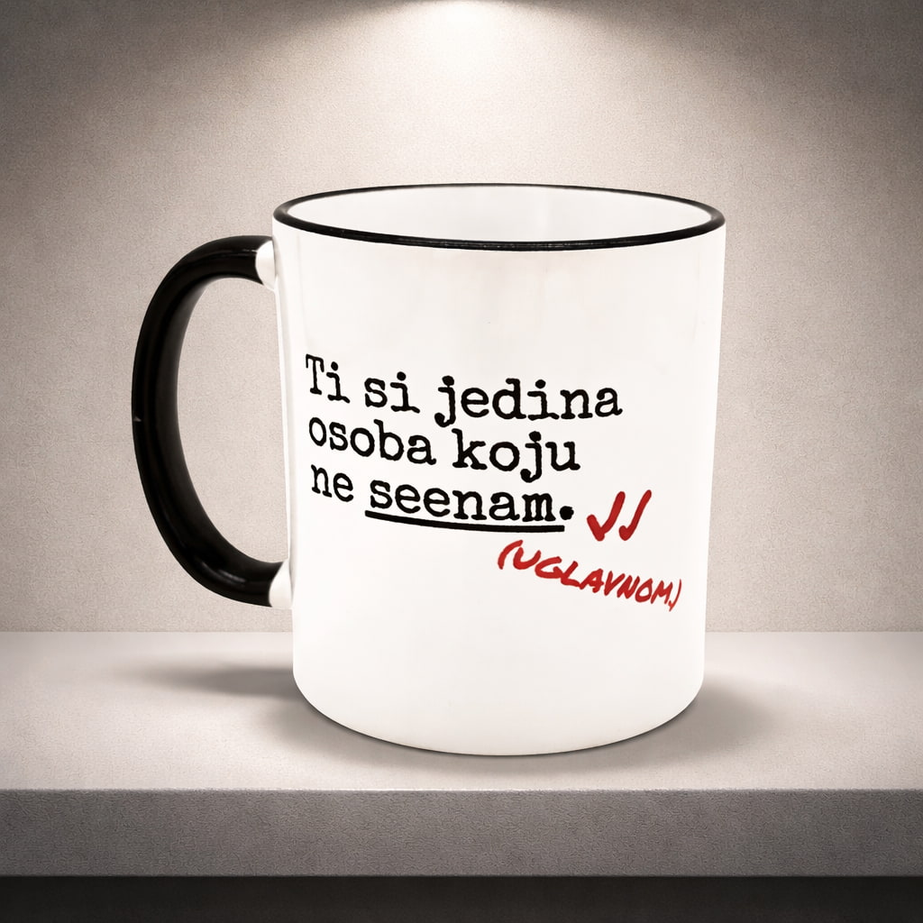Bijela keramička šalica s crnom ručkom i natpisom Ti si jedina osoba koju ne vidiš uglavnom smiješan poklon za dečka ili curu.