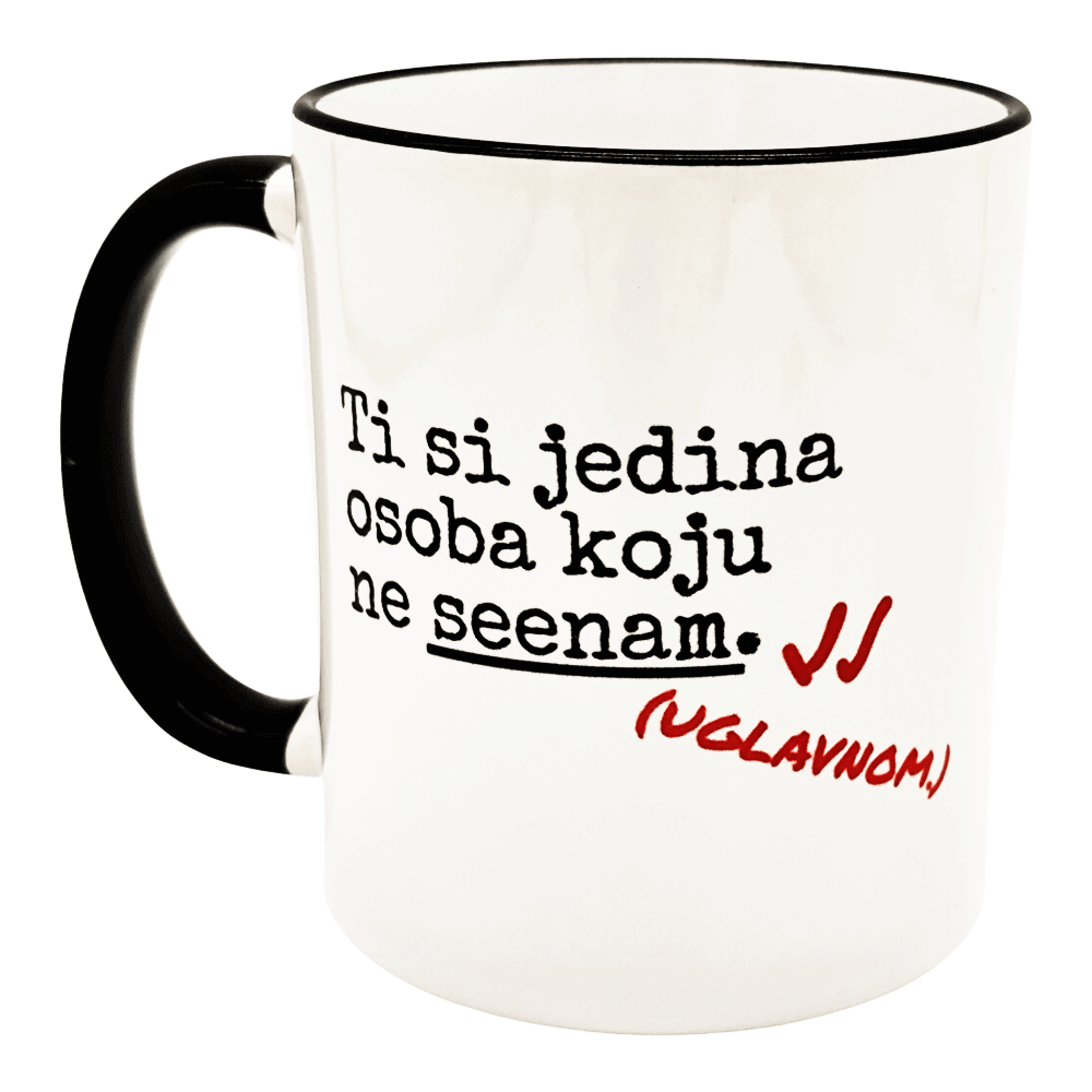 Bijela keramička šalica s crnom ručkom i natpisom Ti si jedina osoba koju ne vidiš uglavnom smiješan poklon za dečka ili curu.