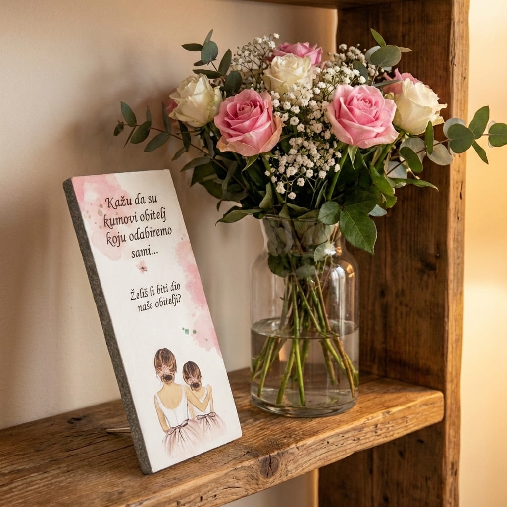 Originalni poklon za kumu: Drvena ploča s posvetom – “Želiš li biti moja kuma?”